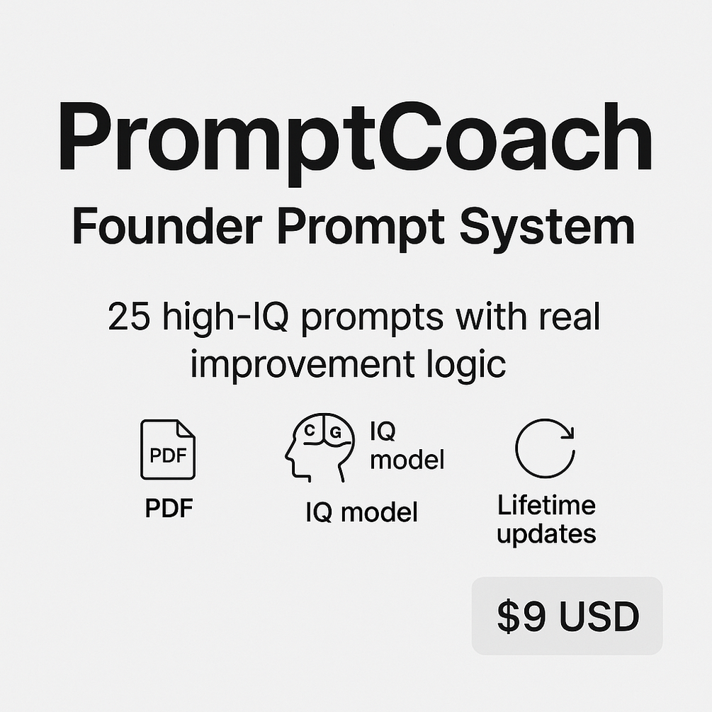 PromptCoach gives you a powerful, 3-layer prompt system for writing, fixing, and optimizing GPT prompts — built by founders, for builders.