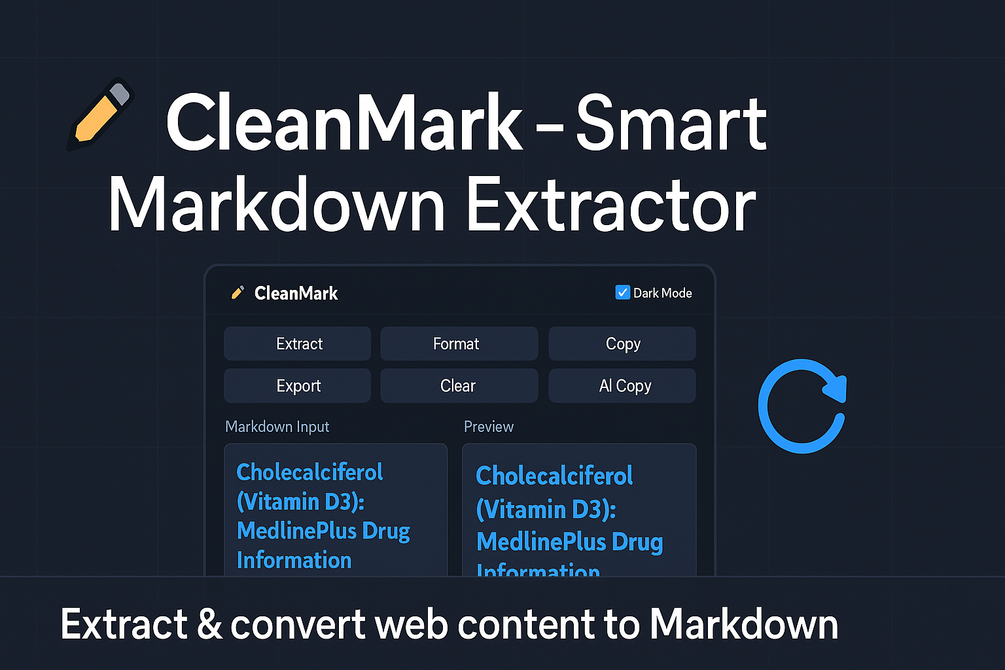 CleanMark is a smart Chrome extension that extracts clean, readable content from any web page and instantly converts it into clean Markdown (.md) format.